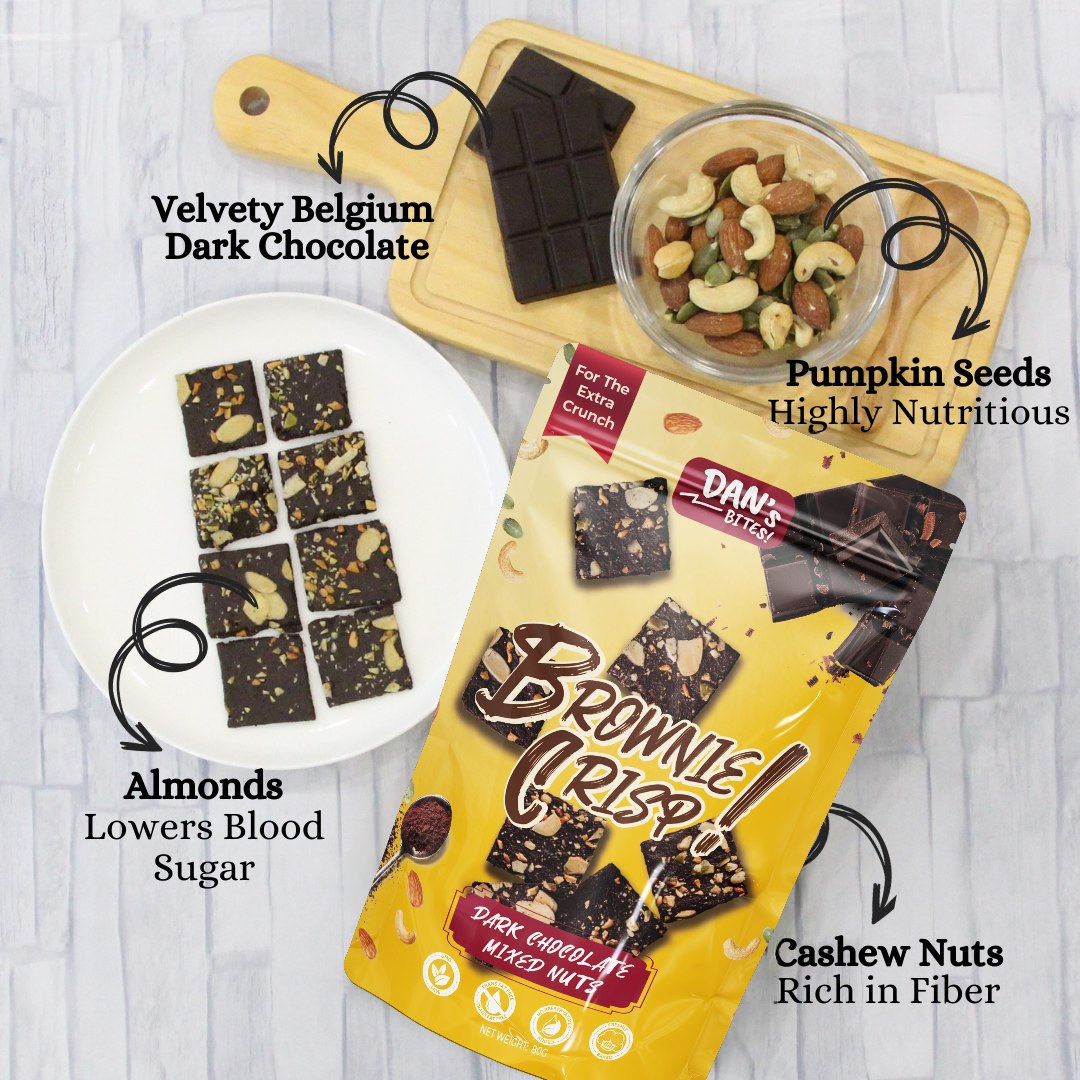 An added touch of nuts (cashew,almond&pumpkin seeds) to our signature dark chocolate brownie crisp worth going NUTS for!